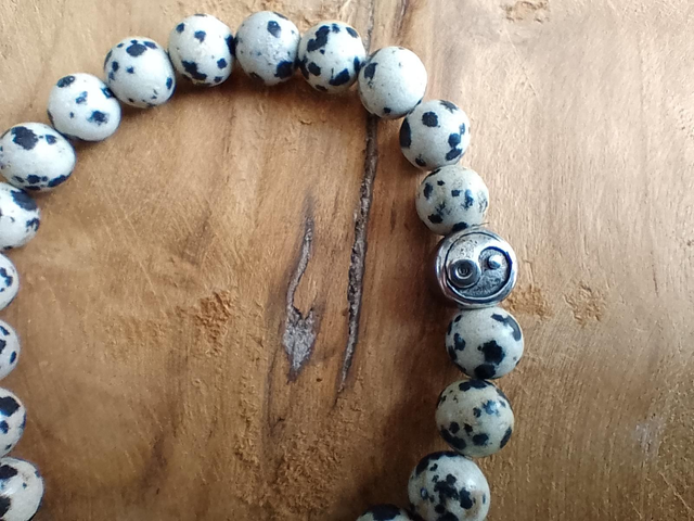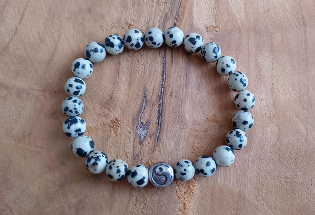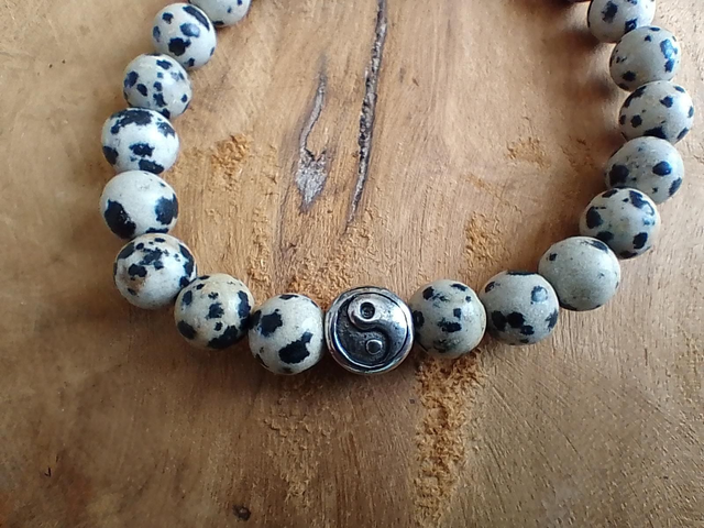 Bracelet Jaspe Dalmatien avec breloque Ying et Yang en acier inoxydable